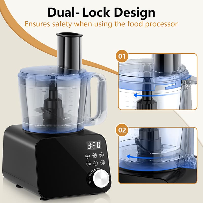 Stepless speeds control with timer and preset programfor ice crushing, chopping, kneading&auto clean